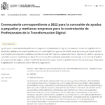 Ayudas, digitalización, pymes, Transformación digital 19/05/2023El Ministerio de Asuntos Económicos y Transformación Digital convoca ayudas para la contratación de profesionales esp...