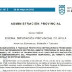 15/06/2023La Diputación Provincial de Ávila convoca Subvenciones para financiar proyectos empresariales promovidos por personas ...
