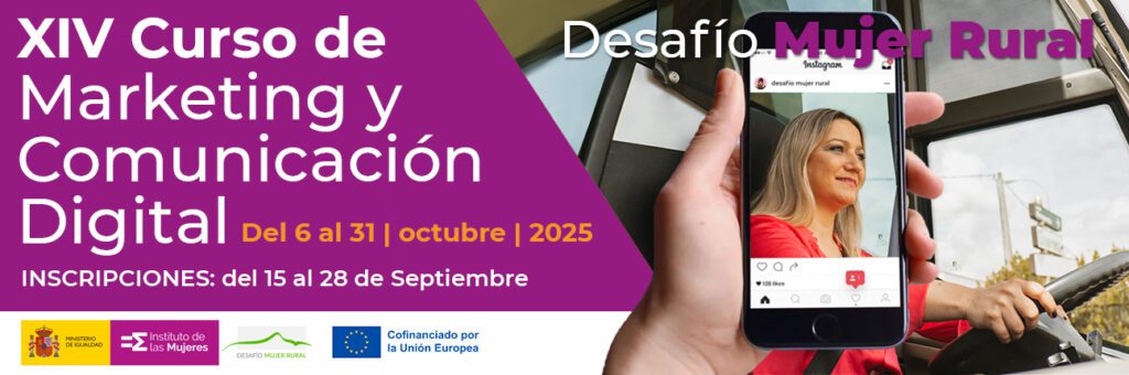 En el marco del programa Desafío Mujer Rural, del Instituto de las Mujeres y cofinanciado por el Fondo Social Europeo, se organiza la decimocuarta edición del curso online “Marketing y Comunicación Digital”, una iniciativa cuyo objetivo es ayudar a emprendedoras y empresarias del ámbito rural a potenciar sus negocios e impulsar la comercialización de sus productos y servicios mediante métodos y herramientas básicas del marketing y la comunicación digital.