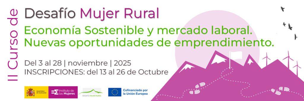 En el marco del programa Desafío Mujer Rural, del Instituto de las MujeresEnlace externo y cofinanciado por el Fondo Social EuropeoEnlace externo, se organiza la segunda edición del curso “Economía Sostenible y mercado laboral. Nuevas oportunidades de emprendimiento” para emprendedoras y empresarias del medio rural, una iniciativa cuyo objetivo es proporcionar a las participantes una comprensión integral de cómo la economía circular, verde y azul puede ser aplicada en el emprendimiento rural y detectar nichos de empleo a nivel laboral, promoviendo la igualdad de género y el empoderamiento de las mujeres.
