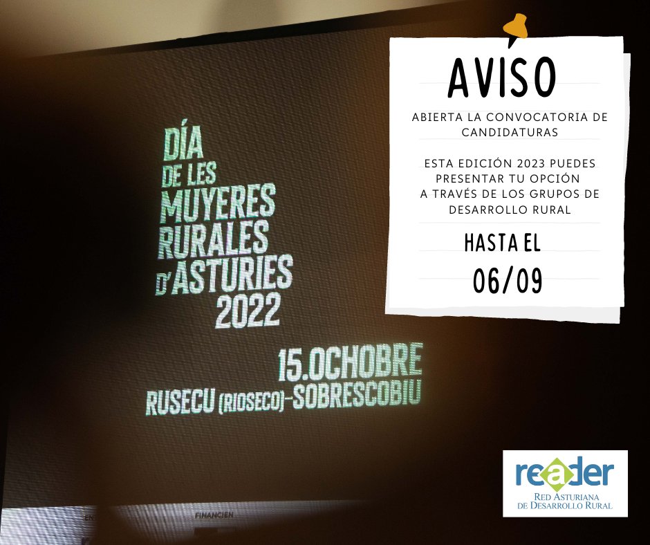 En el marco de la conmemoración del Día Internacional de las Mujeres Rurales que se celebra el 15 de octubre, la Red Asturiana de Desarrollo Rural (READER) abre la convocatoria de candidaturas para el Premio Mujer Rural de Asturias 2023.