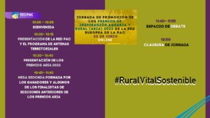 Toda la información sobre esta jornada, incluyendo el programa y los pasos necesarios para participar en los premios, está disponible en: https://www.redruralnacional.es/evento/jornada-promocion-los-premios-inspiracion-agraria-y-rural-aria-2023