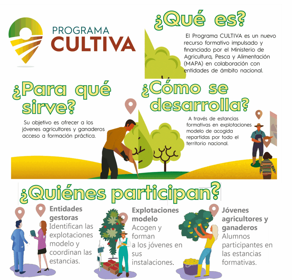 El Ministerio de Agricultura, Pesca y AlimentaciónEnlace externo ha publicado la convocatoria del Programa Cultiva 2025, una iniciativa para impulsar el relevo generacional en el sector agrario español. Desde el 20 de junio de 2025, las personas jóvenes agricultoras y ganaderas tienen la oportunidad de solicitar estancias formativas gratuitas en explotaciones modelo de todo el país, a través de la sede electrónica del ministerio. El plazo de solicitud finaliza el 9 de julio de 2025.
