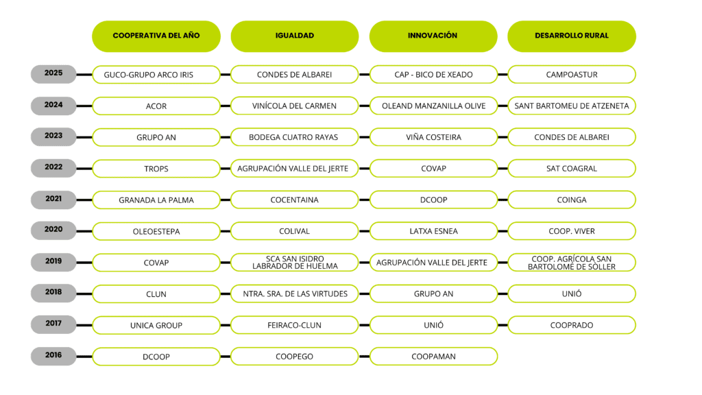 • Cooperativa del Año: Reconocimiento a la entidad con la trayectoria o actividad más destacada durante el ejercicio 2025.